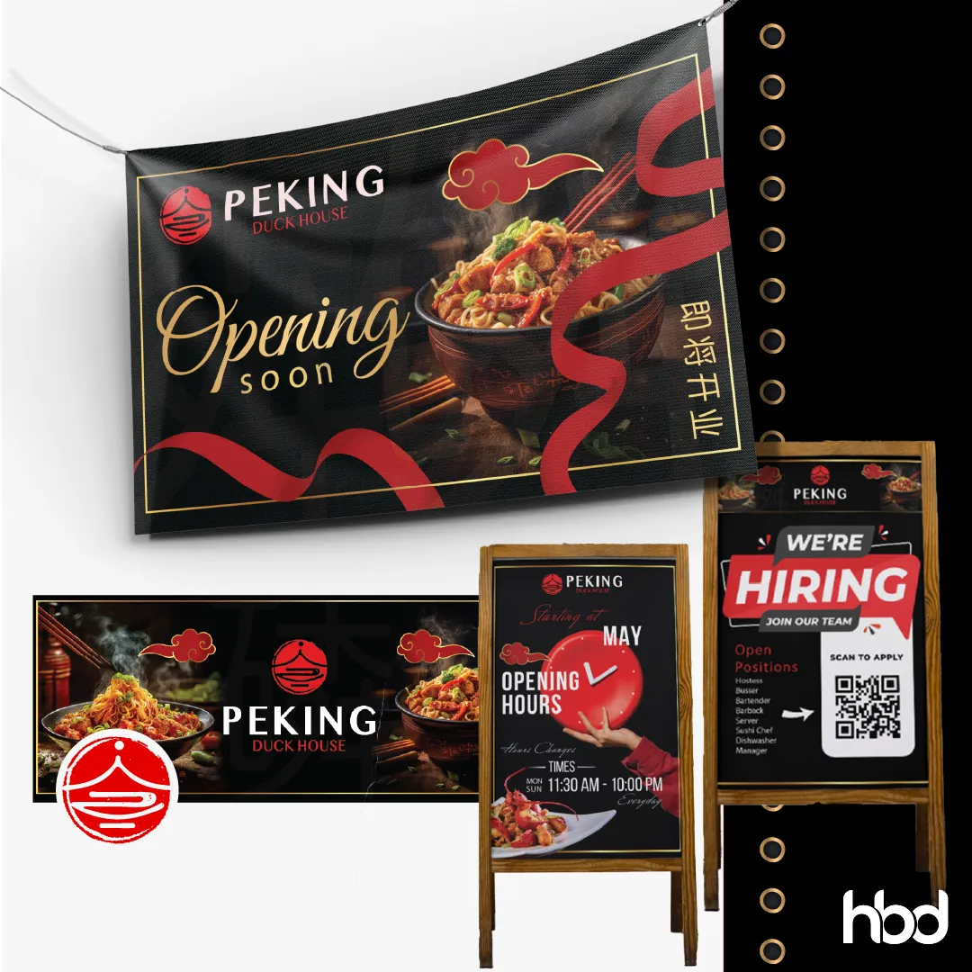 Print ad designs including billboards, flyers, brochures, and business cards.